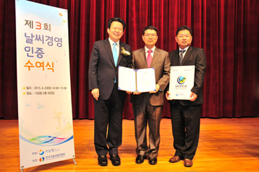 날씨경영인증이란 날씨정보를 기업 경영에 다양하게 활용하여 부가가치를 창출하고 기상재해로부터 안전성을 획득하였음을 인정받는 제도로 기상청이 2011년부터 도입해 시행하고 있다.