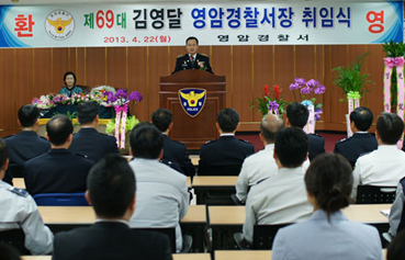 이임한 안병호 서장과 영암군민에 대한 감사와 존경의 뜻을 표시한 김 서장은 “국민 열명 가운데 세명은 범죄발생을 우리 사회의 가장 주된 불안요인으로 꼽고 있다”면서 “국가가 아무리 발전한다 해도 국민이 범죄와 사고부터 두려움을 느낀다면 아무런 의미도 없는 만큼 경찰관이라면 누구나 안전의 소중함을 내면 깊이 새겨 안전 지킴이가 되고 안전 관리자가 되어야한다”고 강조했다.