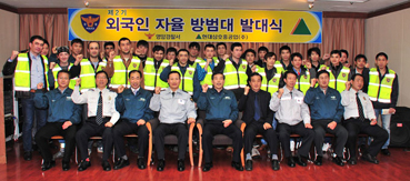 외국인 자율방범대는 베트남 13명, 우즈백 10명, 캄보디아 3명, 필리핀 2명 모두 28명으로 구성되어 있으며, 이들은 매월 1회 영암경찰서와 함께 현대삼호중공업 인근 지역을 순찰해 범죄예방활동을 펼칠 계획이다.