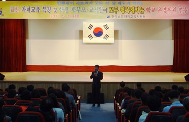 영암교육지원청(교육장 장동연)은 지난 5월28일 오후 군 청소년수련관에서 관내 유·초·중·고 학교운영위원 230여명이 참석한 가운데 ‘氣찬 자녀교육 특강 및 학생·학부모·교직원이 행복해지는 학교운영위원 연수’를 실시했다.