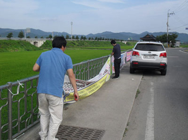 한편 가로수, 가로등, 육교, 전주 등 공공시설물에 현수막 등 불법 유동광고물을 설치한 자는 500만원 이하의 과태료가 부과될 수 있다. 군은 그동안 불법광고물 2천200건을 정비한 바 있다.