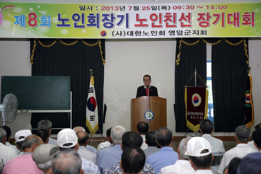 제8회 영암군 노인회장기 친선 장기대회가 7월25일 군 노인복지회관에서 관내 유관기관 단체장과 읍면별 선수단 등 130여명이 참석한 가운데 열렸다.