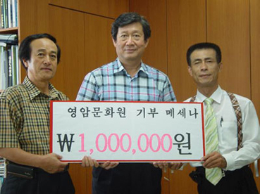 영암군음악동호회 김성대 회장과 김철회 강사는 지난 8월12일 영암문화원을 방문해 김한남 원장에게 100만원을 전달해 영암문화원 기부 메세나에 등록 했다.
