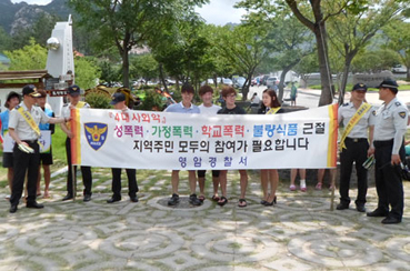 이날 캠페인에는 영암경찰서 생활안전계 경찰관 4명, 읍내파출소 경찰관 2명 등이 참여해 4대 사회악 전단지, 홍보물 등을 나눠주었으며 성범죄예방 및 물놀의 안전사고 행동수칙 등 홍보했다.