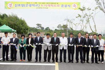 총사업비 30억원을 투입해 지난 2011년7월 착공에 들어간 신호정(은광학교) 도시계획도로는 총연장 773m 구간에 아스팔트 포장도로, 인도, 자전거도로 등을 갖춘 노폭 15m 2차선 도로로 3년간의 공사 끝에 준공됐다.