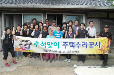 영암소방서 직원 및 의용소방대원들은 지난 3일 삼호읍 엄포마을을 화재없는 안전마을로 지정하고 각 세대에 기초소방시설을 보급했다. 또 화재취약계층 1세대를 선정해 노후주택을 수리했고, 동네 어르신들을 대상으로 기초건강체크, 경로잔치 등의 봉사활동과 함께 위문품을 전달했다.
