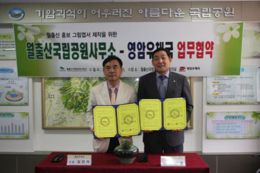 월출산국립공원사무소(소장 김승희)는 지난 9월11일 월출산의 수려한 자연경관을 홍보하고 지역경제 활성화에 기여하기 위해 영암우체국(국장 김민석)과 생태관광 그림엽서 공동제작 및 배포를 위한 업무협약(MOU)을 체결했다.