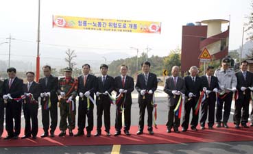 군은 지난 2011년10월 총사업비 37억원을 투입해 학산면 금계리에서 서호면 청용리 연정마을을 거쳐 고속국도 10호선(영암∼순천)의 서호·학산 나들목까지 연결하는 총 2km 구간에 대해 왕복 2차선 아스팔트 포장도로 개선하는 위험도로 개선공사에 착수해 2년간의 공사기간 끝에 이날 개통식을 가졌다.
