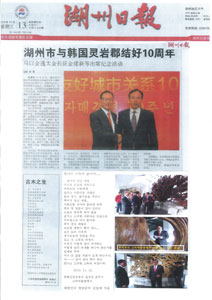 지난 11월11일부터 15일까지 자매도시인 중국 저장성 후저우시(시장 김장정) 초청으로 중국을 방문한 김일태 군수가 공식행사장에서 ‘빛나는 고목의 삶이여…’라는 즉석 시를 낭송, 중국 문객들을 놀라게한데 이어 이 시가 호주일보에 게재되어 화제가 되고 있다.