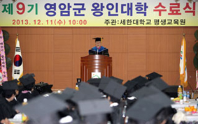 세한대학교 평생교육원에 위탁 운영한 2013년도 제9기 왕인대학에는 60세 이상 어르신 120명이 입학해 이날 수료식에서 111명이 수료장을 받았다. 이로써 왕인대학은 지금까지 9년간 모두 1천184명의 수료생을 배출했다.