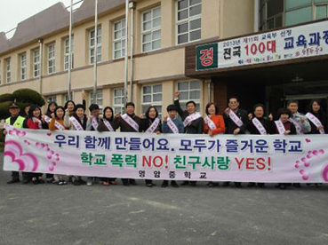 캠페인에 참여한 영암월출교직회 김승희 회장은 “학생들이 단순한 폭력도 그 심각성이 크다는 것을 알아야 한다”면서 “지역사회에서 우리 자녀가 학교폭력에 노출되지 않도록 다방면으로 도울 생각”이라고 학교폭력예방에 대한 의지를 밝혔다.