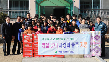 현대삼호중공업은 2002년 이래 13년째 추석과 설 등 명절에 지역의 복지시설과 어려운 이웃을 찾아 선물을 전달해오고 있다.