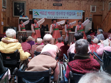 또 관내 여성들로 구성된 수강생들이 지난 1년 동안 복지관에서 취미생활로 익힌 통기타와 난타를 직접 공연해 시설 관계자와 외로운 어르신들에게 큰 선물을 했다.