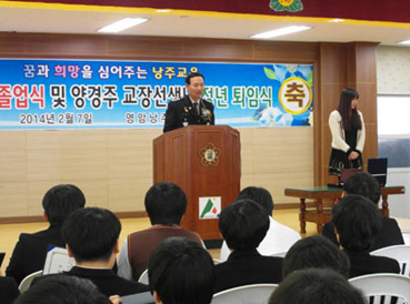 영암경찰서 김영달 서장은 지난 2월7일 모교인 낭주중학교 졸업식장을 방문해 교육청, 군청 등과 합동으로 ‘뒤풀이 없는 건전한 졸업식 보내기’ 캠페인을 벌였다.