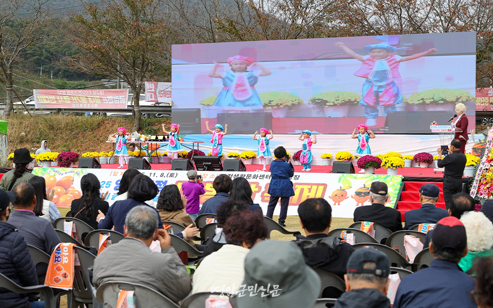 행사장에는 탐스럽게 익은 대봉감이 풍성하게 전시됐고, 감 깎기 체험, 전통놀이, 주민 공연, 시식·판매 행사 등 다양한 프로그램이 마련돼 방문객들의 오감을 만족시키는 축제가 이어졌다. 특히 대봉감 직거래 장터는 신선한 대봉감을 산지 가격으로 구매할 수 있어 큰 호응을 얻었다.
