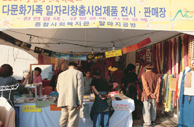 국화축제장에서는 종합사회복지관의 다문화여성 일자리창출사업 일환으로 실시한 천연염색과 규방공예 교육수강생들이 직접 생산한 34종의 생활공예품을 판매해 관람객들의 발길이 이어졌다.