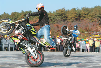 주무대 앞에서 식후행사로 펼쳐진 모터사이클 묘기는 관람객들에게 색다른 볼거리를 제공했다.