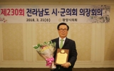 지역사회 이승범 기자509호2018. 03.23영암군의회 박영배 의장은 지난 3월 21일 전남시군의회의장회의 정기회의에서 지방자치 발전에 기여한 공로로 전국시군자치구의회의장협의회(회장 이환설)로부터 지방의정봉사상을 수상하는 영예를 안았다.지방의정봉사상은 전국시군자치구의회의장협의회가 투철한 사명감과 봉사정신으로 지역발전에 기여한 기초의원을 시·도로부터 추천받아 수여하는 상이다.박영배 의장은 제2대 영암군의회 의원으로 당선된 이후 내리 6선을 했으며, 현재 제7대 영암군의회 후반기 의장으로 군민과의 소통과 현장 중심의 다가가는 의정활동을 펼쳐왔으며, 지역현안들에도 적극...