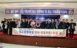 자치/행정 이춘성 기자458호2017. 03.03전동평 군수는 지난 2월28일 광주상공회의소에서 무등일보와 한국거버넌스학회가 공동 주관해 열린 제1회 광주·전남 지방자치 최고경영대상 시상식에서 ‘문화·관광부문’에서 전남도지사상을 수상했다.전 군수가 수상한 지방자치 최고경영대상은 기업 CEO 출신답게 지방행정에 경영마인드를 도입, 탁월한 리더십과 혁신적인 아이디어를 통해 왕인문화축제를 명품축제, 경제축제, 안전축제로 개최하는 등 지역경제 발전에 괄목할만한 성과를 거둔 점을 높이 평가받은 결과다.전 군수는 특히 민선 6기 출범과 함께 영...