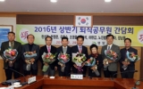 자치/행정 이춘성 기자451호2017. 01.062016년 하반기 퇴직공무원 간담회가 지난 12월29일 군청 낭산실에서 정년퇴직자 7명이 참석한 가운데 열렸다.전동평 군수와 김영수 부군수를 비롯한 실·과·소장들이 자리를 함께 한 가운데 열린 이날 간담회에서는 정부포상 전수, 공로패 및 재직기념패 전달, 기념촬영 등의 순으로 진행됐다.특히 이날 간담회에서는 한영준 전 도포면장과 조영율 전 군서면장에게 녹조근정훈장, 최상석, 노진범, 이경자씨에게 옥조근정훈장, 하현갑씨에게 근정포장이 각각 전수됐다.상훈법에 따르면 훈장은 재직기간이 33년 이상, 근정포장은...