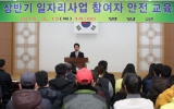 자치/행정 영암군민신문366호2015. 03.20군은 지난 3월12일 군청 도선실에서 2015년 상반기 일자리 사업의 성공적인 추진의지를 대내외에 널리 알리고 사고의 사전예방과 피해를 최소화하기 위한 안전교육을 일자리 참여자와 사업장 업무담당자 등 70여명을 대상으로 실시했다.