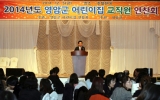 지역사회 영암군민신문353호2014. 12.12영암군 어린이집 연합회(회장 문미옥)는 지난 12월5일 호텔현대에서 400여명의 보육교직원과 관계자들이 참석한 가운데 영암군 보육교직원 연찬회를 개최했다.이번 보육교직원 연찬회는 영암 관내 40개소의 어린이집에서 아이들에게 꿈과 희망을 키워주고 사랑과 따뜻한 마음으로 아이들을 보호하고 교육하는데 열정을 쏟고 있는 교사들의 노고를 위로하고, 어린이집 간 정보교환과 소통의 장을 만들어 보다 질 높은 보육서비스를 제공할 수 있는 방향을 제시하기위해 마련됐다.전동평 군수는 이날 연찬회에서 "미래의 꿈나무인 어린이들을 기르고 가르치...