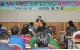 새정치민주연합 황주홍 국회의원(장흥·강진·영암)은 지난 4월11일 영암실내체육관 1층 소회의실에서 최근 가격폭락으로 어려움을 겪고 있는 마늘 양파 재배농민들을 위한 간담회를 열었다.영암, 장흥, 강진지역 마늘 양파 재배농민 100여명과 농식품부 원예산업과 김철순 사무관, 농협중앙회 김종배 차장 등 관계자들과 함께 한 이날 간담회에서 농민들은 정부의 생산비 기준이 ㎏당 215원으로 비현실적인 만큼 생산비 기준을 ㎏당 350원으로 상향조정해줄 것을 건의했다. 농민들은 또 홍수 출하에 따른 가격안정을 위해 대형유...