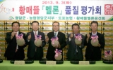 기획특집 이춘성 기자292호2013. 09.06도포농협(조합장 이진용)은 지난 9월3일 도포농협 친환경유통센터에서 영암 ‘황매뜰‘ 멜론 품질평가회를 가졌다.황매뜰 멜론은 영암에서 생산되는 멜론의 단일 브랜드 명칭이다.김일태 군수와 최익주 농협 영암군지부장, 이진용 조합장 등을 비롯한 내외귀빈과 황매뜰공선회원 및 유통담당자 등 120명이 참석한 가운데 열린 이날 품평회는 멜론 품종별 특성을 평가해 지역의 명품 농산물을 육성하고, 친환경농업 실천농가의 자긍심 고취 및 농가 소득증대, 품질향상을 통한 안전 농산물 소비촉진 등을 도모하기 위해 계획됐다.김일태 군수...