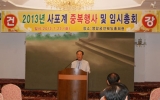 자치/행정 영암군민신문287호2013. 07.26영암 사포계 2013년도 중복행사 및 임시총회가 지난 7월23일 오전 영암읍 궁전회관에서 윤흥진 이사장을 비롯한 사포계원 70여명이 참석한 가운데 열렸다.영암 사포계는 예와 악을 바탕으로 친목을 도모하고 연고(年高)덕행(德行)자의 정신을 기리기 위해 매년 중복 날이면 행사를 치르고 있다.