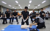 자치/행정 영암군민신문282호2013. 06.21영암소방서(서장 박용기)는 지난 6월17일 청사 내에서 전 직원 심폐소생술 전문가 양성과정을 운영했다.영암소방서는 최근 3년간 영암군에서 일어난 심정지 이송 환자수를 분석한 결과 총 157명의 환자 중 소생환자는 3명(1.9%)에 불과한 점을 감안해, 전 직원을 대상으로 심폐소생술 전문가 양성과정을 실시하게 됐다고 밝혔다.이날 교육은 대한심폐소생협회에서 발간한 동영상자료를 토대로, 성인 심폐소생술, 소아 심폐소생술, 자동제세동기 사용, 기도폐쇄 등 4과정으로 진행되었으며, 모든 교육이 끝나고 전체 평가를 통해 교육이수증을 발급하...
