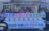 지역사회 영암군민신문769호2023. 08.11덕진면지역사회보장협의체(공공위원장 임채을 면장, 민간위원장 조형일)는 8월 3일 마을복지계획의 하나인 '여름나기 꾸러미 지원사업'을 진행했다. 덕진면의 마을복지계획은 주민이 제안하고 공개투표로 결정한 것으로, 면에서 가장 필요한 복지의제들로 이뤄져있다. 이날 위원들은 폭염에 취약한 저소득층 가정 40곳을 방문해 안부를 묻고, 여름나기에 요긴한 물건으로 구성된 꾸러미를 전달했다. 임채을 공공위원장은 "모두가 행복한 마을을 위해 주민이 복지 의제를 선정하고 실천에 나섰다. 내 마을의 문제는 스스...