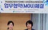농업경제 영암군민신문719호2022. 07.22삼호읍청소년문화의집(관장 양지훈)은 지난 7월 15일 전남서부근로자건강센터(센터장 전경숙)와 근로자들의 직무스트레스 예방과 건강증진을 위한 업무협약을 체결했다. 이번 협약에서 양측은 근로자의 건강보호와 건강증진에 필요한 프로그램 마련 및 운영, 건강관리에 필요한 정보의 공유, 기관 상호간 홍보 협력 및 정보 교류를 통해 근로자 지원을 강화하기로 했다. 또 기관의 발전을 위한 적극적인 협조 및 정보교류를 약속했다. 전남서부근로자센터는 삼호읍청소년문화의집 근로자들에게 업무상 발생할 수 있는 직무스트레스 관리와 건강서비스를 제...