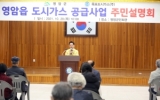 자치/행정 영암군민신문682호2021. 10.29‘영암읍 도시가스공급사업 주민설명회’가 지난 10월 28일 군민회관 2층에서 열렸다. 이날 설명회에는 전동평 군수와 우승희, 이보라미 전남도의원, 박영배, 김기천 영암군의원, 신윤배 목포도시가스㈜ 본부장, 양영호 영암읍이장단장 등을 비롯한 주민 100여명이 참석해 도시가스공급에 대한 큰 관심을 보였다. 목포도시가스㈜(대표 정경오) 김성곤 기술팀장은 사업개요와 주배관망도, 영암읍배관망도, 주민 부담 공사비 산출내역, 도시가스 신청 시 소요비용, 계약주체별 자부담 산출내역, LPG와 도시가스 연간 에너지...