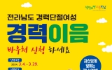 자치/행정 이승범 기자2024. 06.20전라남도는 출산과 육아 등으로 직장을 그만둔 후 재취업에 어려움을 겪는 경력 단절 여성에게 구직에 필요한 취업·면접 준비 비용을 지원하는 ‘경력이음바우처’ 이용자를 오는 29일까지 모집한다고 밝혔다. 경력이음 바우처 이용자에게는 취업·면접 준비 비용으로 사용할 수 있도록 50만 원이 지원된다. 신청일 기준 전남에 1년 이상 주소를 두고, 취업 지원기관에 구직을 등록한 30~65세(1959년생~1993년생)로, 재취업을 바라는 중위소득 150% 이하 경력 단절 여성을 대상으로 지원한다. 다만 고용노동부 구직촉진수당, ...
