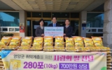 자치/행정 영암군민신문2023. 03.31NH농협은행 영암군지부(지부장 임정빈)는 1월 31일 쌀 소비감소와 쌀값 하락으로 어려움을 겪고 있는 농업인을 돕고, 취약 계층에 따스한 온정을 전하기 위해 사랑의 쌀 280포(10kg 들이 700만원 상당) 전달식을 가졌다. 전달식에는 우승희 군수와 임정빈 지부장, 김성실 영암군지역사회보장협의체 민간위원장 등이 참석했다. 임정빈 지부장은 "농협은 사랑의 쌀 나눔 행사를 통해 농업인과 주민들에게 조금이나마 도움이 되길 바라며, 앞으로도 다양한 방법으로 지역사회에 보탬이 되는 사회공헌활동을 지속하겠다"고 ...