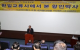 보류 이춘성 기자2019. 07.26'2019 왕인문화축제 학술강연회'가 지난 4월 4일 왕인박사 유적지 영월관 2층 강당에서 '조선 통신사와 왕인박사의 만남'이라는 주제로 열렸다. 영암군과 (사)왕인박사현창협회가 주최하고 왕인문화연구소가 주관한 이날 학술강연회에서는 박광순 대한민국학술원 교수가 '조선 통신사와 왕인박사의 만남'이라는 주제 강연을 한 것을 비롯해, 구지현 선문대 교수가 '남용익의 통신사행으로 본 왕인', 허경진 연세대 명예교수가 '왕인박사 기록의 데이터베이스 편찬의 필요성과 그 방안', 일본 오사카역사박물관 오사와 겐이치(大澤硏一) 학예과장이 '조선 통신사와 왕인박사의 만남'이라는 주제 강연을 했다. 또 사회를 맡은 정성일 광주여대 교수가 '조선 통신사의 여정과 경제·문화사적 의의'...