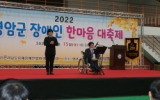 지역사회 영암군민신문2023. 11.17'2022년 영암군 장애인 한마음 대축제'가 11월 15일 영암실내체육관에서 열렸다. (사)전라남도지체장애인협회 영암군지회(회장 박광열) 주관으로 열린 이날 행사에는 우승희 군수와 강찬원 의장, 최광표 영암교육장, 문수전 농협 영암군지부장, 한국장애인노동조합총연맹 호남본부 이월희 본부장, 전남지체장애인협회 김종택 회장을 비롯한 도내 시·군 지회장, 영암군장애인협회 회원 등 500여명이 자리를 함께했다. 진도북놀이 북춤공연과 백현미씨의 판소리 공연 등 식전행사로 막을 연 이날 기념식에서는 영암군지...