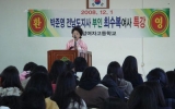 변중섭 기자95호2009.08.07 14:52영암여자고등학교(교장 황용주)는 지난 1일 고3 수능이후 특별 프로그램 중 하나인 명사 초청 특강의 일환으로 박준영 전라남도지사 사모님 최수복 여사를 초청 특강을 실시했다. 최수복여사는 이날 특강에서 &lsquo...